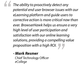 With BrowserHawk, we’ve improved customer service in terms of faster solution turnaround for our students, and improved help desk efficiency. BrowserHawk detects everything needed to ensure the best web experience, and updates itself automatically. This allows our IT team to focus more on strategic initiatives, such as growing our customer base and expanding our offerings – rather than on browser detection.